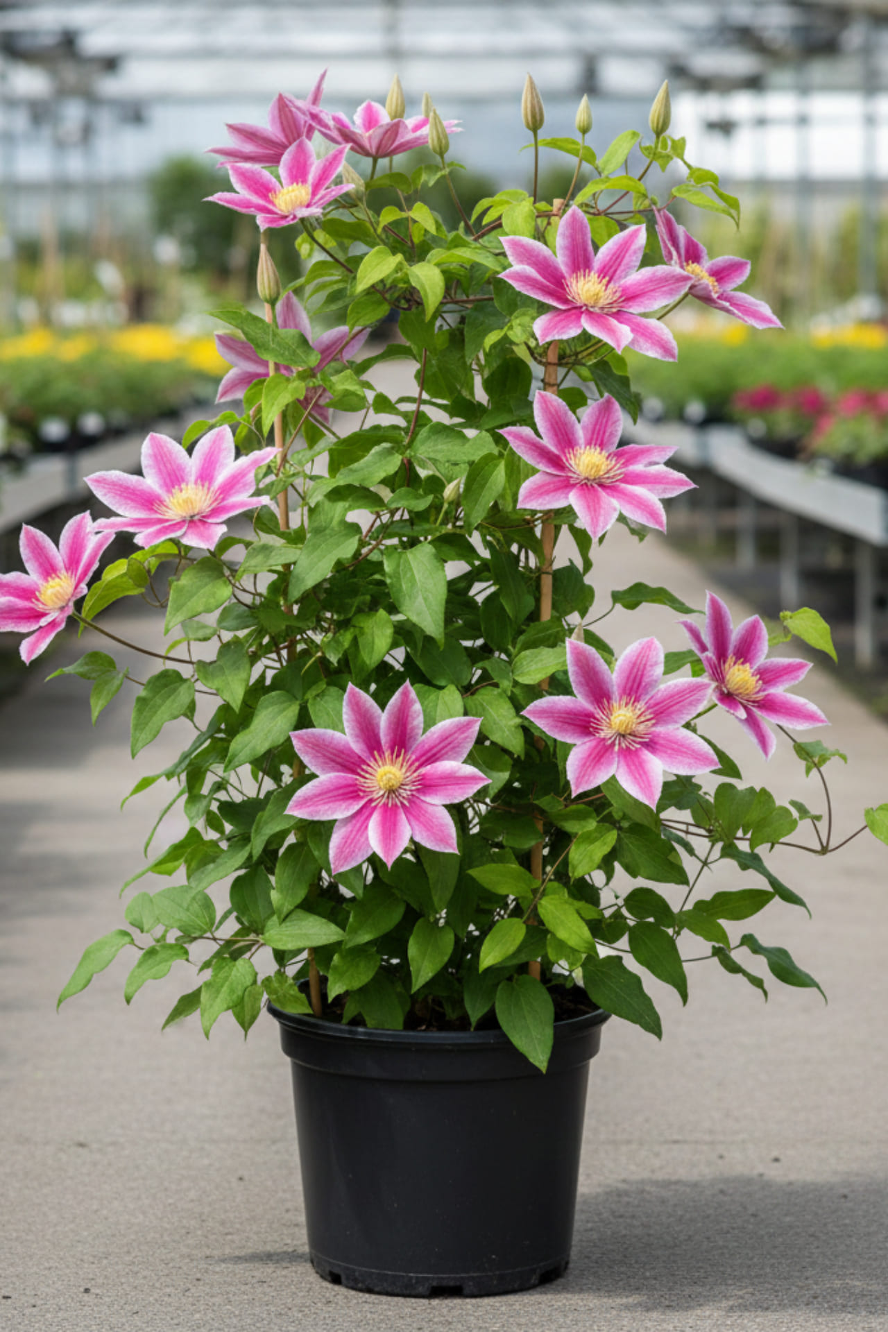 Умеренно растущий сорт, с крупными двуцветными цветками: ярко-розовыми с белой полоской и жёлтыми тычинками. Высота растения до 2-3 метров. Цветет с мая по сентябрь. Нуждается в слабой обрезке. Не любит солнечные и жаркие места. На солнечных местах цветки бледнеют и быстро отцветают. Хорошо подходит для посадки у ограждений, беседок, решёток и других садовых опор. Может виться по натуральным опорам, например кустарникам или полукустарникам, не требующим сильной обрезки. Подходит для выращивания в контейнерах.
