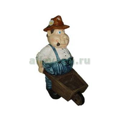 Фигура садовая ДАЧНИК В ШЛЯПЕ С ТАЧКОЙ в Екатеринбурге