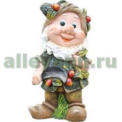 Фигура садовая ГНОМИК С ЯГОДАМИ НА ШЛЯПЕ И КОСОЙ в Екатеринбурге